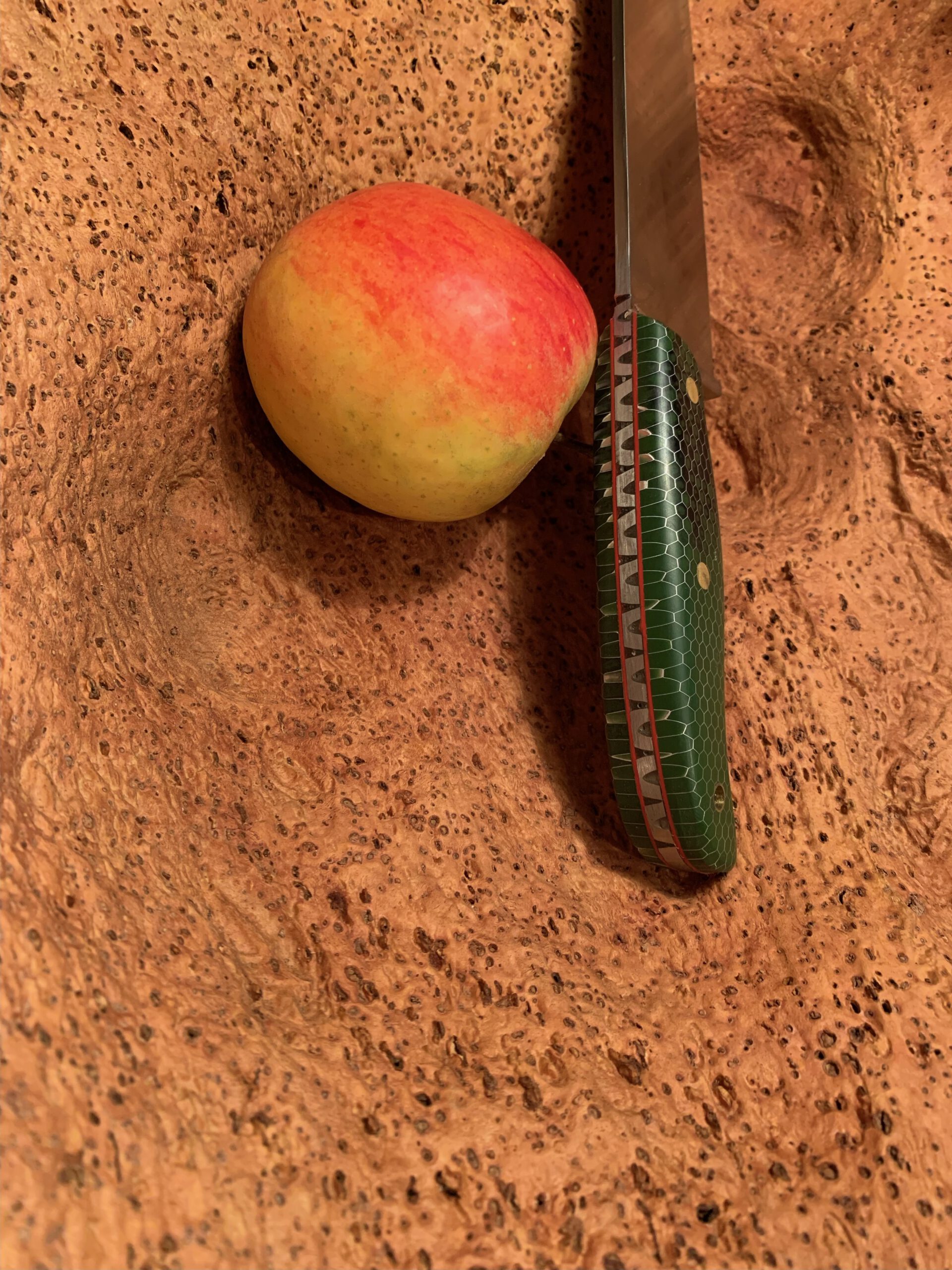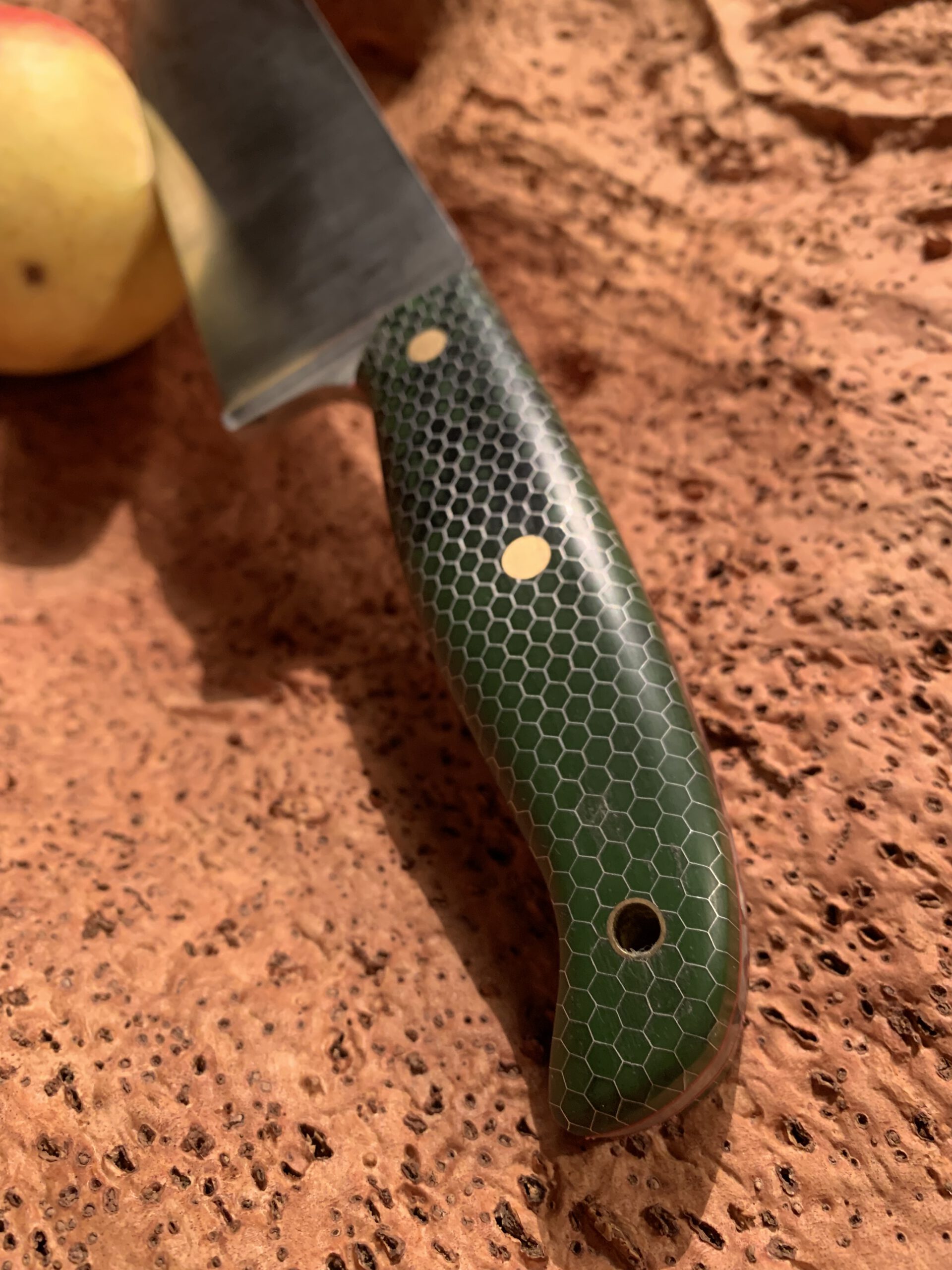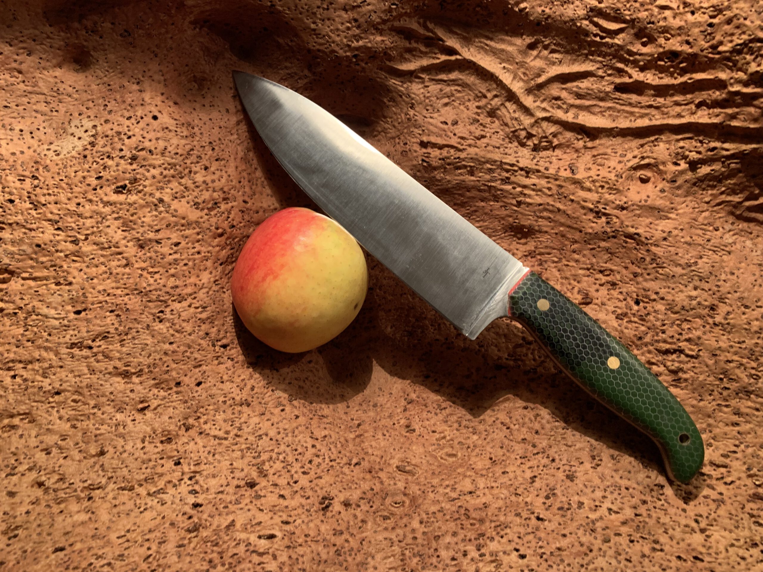 Dieses Küchenmesser habe ich aus Cronidur 30 gefertigt. Das ist ein Stahl der für die Spaceshuttles entwicklet wurde, da der Sauerstoff die Ventile sehr stark korrodierte und diese sehr häufig ersetzt werden mussten.